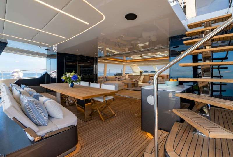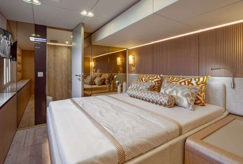 Spacious cabins, roomy saloon, and flybridge for lounging or sunbathing.