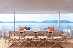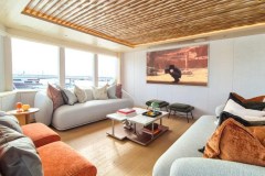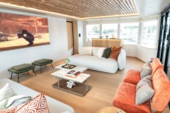 Layouts that work. The full-beam master suite is on the main deck, with two VIPs and two twins on the lower deck, including a Pullman for flexibility when the group mix changes mid-charter.