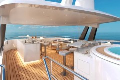Top deck payoff. A raised sun deck Jacuzzi, plus a bar and space for dining, gives you an easy default plan for late afternoons and low-effort evenings. Panoramic views included.