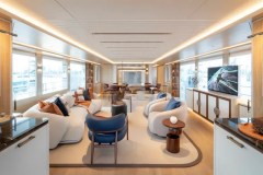 Brand-new Moonen build. ADASTRA is a 37.4m (122’8”) Moonen motor yacht, delivered in 2025, set up to sleep 10 guests in five staterooms. This is the clean-sheet option for guests who want modern systems and no “previous-owner quirks.”
