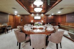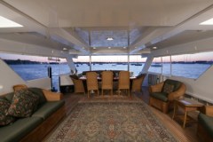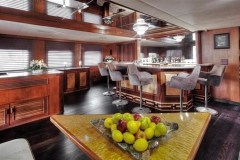 Inside, AGA 6 is built for actual living, not just brochure photos: a proper salon, a separate formal dining area that comfortably seats 10, and a second lounge/bar aft for when the group splits into “quiet talk” and “one-more-round” factions. Big windows, classic lines, modern amenities, and full air‑conditioning keep everything calm, bright, and functional.