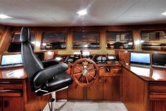 Under the paint, she’s all business: steel hull, aluminum superstructure, full‑displacement platform, cruising around 12–13 knots in comfort. That combination gives you stability at anchor, serious volume for a 46m, and the sort of range that makes one‑week itineraries feel like underuse.