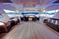Large sundeck with plenty of seating and sunbathing areas for group fun, cocktails, or quiet lounging.