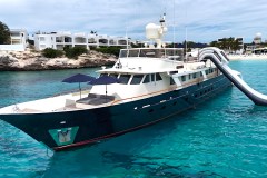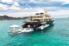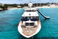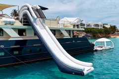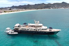 Toys, not just talk. You get 2 JetSkis, 2 Seabobs, and snorkeling gear for 8, plus a variety of other watersports equipment noted including waverunners, a water slide, and Aquabana. There is also a 25ft Sportsman towed tender set up for fishing action.
