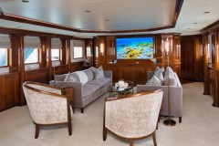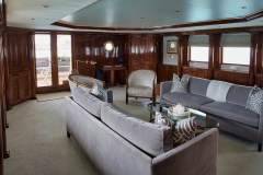 Classic, but updated. BLU is a 124-foot American motor yacht built in 1979 and refit in 2025, keeping the ocean-liner look while swapping in fresh soft goods and finishes from a major 2024–25 refresh.