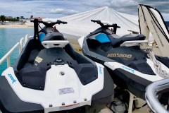 2 Jet Skis and 2 Seabobs, plus a waterslide and snorkeling gear. -