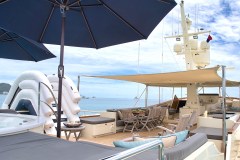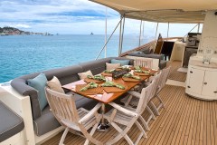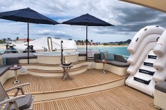 Raised Jacuzzi with sunbed aft, plus bar and BBQ for easy day-long lounging. -
