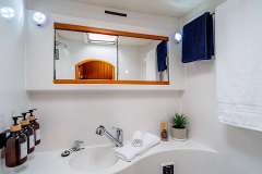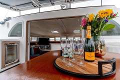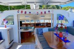TABULA RASA is classified primarily as a sailing catamaran. The central space of the yacht is the main saloon, which connects to the aft deck. The aft deck is expansive, with a comfortable dining and seating area and that's where the guests spend most of their time. The modern cabins are located below the main saloon, connected by stairs (inquire about handicapped access). The cabins are connected by stairs to the main saloon - roomy, comfortable and pleasant. Multiple portholes provide a connection with the natural world outside.