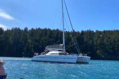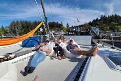 We bought our "Tabby Cat" in 2022, sailing her with our entire family from Fort Lauderdale to Seattle. She is a Lagoon 570, and we worked feverishly through 2022/23, updating most systems and preparing her for an enjoyable charter experience. She has four ensuite staterooms available, inviting eight guests for overnight stays with a spacious salon and ample aft deck seating for up to 12 on day trips. The trampolines are a popular hangout while cruising, too!
