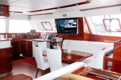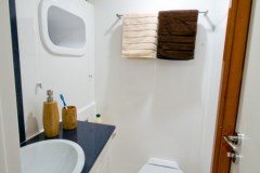 She’s a true “bring-the-whole-crew” cat. Four ensuite double cabins sleep up to 8 guests, with a proper master, VIP and two doubles, so no one gets the short straw bunk. Air conditioning throughout keeps the “who set the thermostat?” arguments to a minimum.