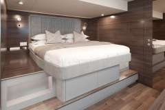 Owners King suite, VIP King Cabin, Queen Cabin, 1 Double Twin Cabin that can be slid together or kept apart.Crew in 1 double twin cabin.