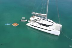 ANDIAMO is introduced primarily as a sailing catamaran. The the core layout is spread out from the main saloon, which connects to the aft deck. The aft deck features a variety of seating areas and that's where most of the meals are served. The tastefully decorated cabins offer unbeatable views in the morning and are located just below deck. The cabins are connected by stairs to the main saloon - roomy, comfortable and pleasant. Multiple portholes provide a connection with the natural world outside.
