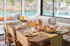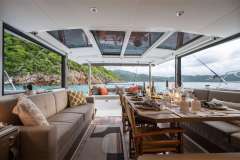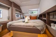 APRICITY is introduced primarily as a sailing catamaran. The the heart of the yacht is the main saloon, which connects to the aft deck. The aft deck features a variety of seating areas and usually it is where you, as a charter guest, spend most of your time. The tastefully decorated cabins are located in the 2 massive hulls. The cabins are located in the 2 massive hulls. Multiple portholes add to the feeling of connection with the discovered environment.