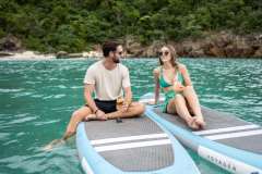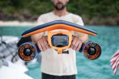 Guests will also enjoy a fully customizable menu, a well-stocked ship's bar, and a coffee/espresso machine. For fun, there's snorkeling gear, underwater scooters, a subwing, wakeboards, water skis, stand-up paddleboards, a towable water tube, a 10-foot floating dock, pool noodles, fishing gear, board and card games, a television in the salon, a Fusion 3 Bluetooth-enabled sound system, and Apricity giveaways.