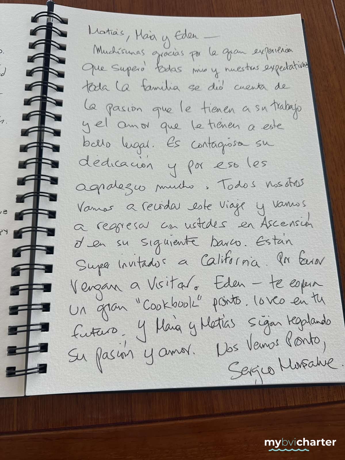 Maia, your music was an absolute joy to listen to that filled our hearts with such pleasure. Don' t ever stop singing and playing the piano and guitar. Matias you made us always feel safe knowing you were in complete control of the boat. Eden, your quiet kindness was a joy to see and and really enjoyed everything you cooked for us. Until we meet again, thank you!!