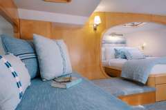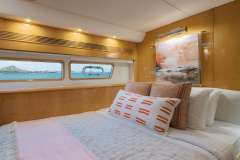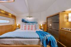 Cabin setup that works. Four double cabins means no one is drawing the short straw. The master was remodeled in 2024, and the master, saloon, and galley all saw major updates as part of the recent works.