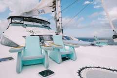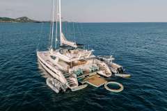 Water time, immediately. A swim platform and outdoor shower make the jump in and climb out routine painless. Add the BBQ, sunpads, air conditioning, and Wi-Fi/Starlink, and you can alternate between “outside all day” and “fine, I’ll answer emails.”