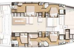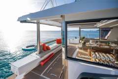 BAREFOOT BLISS is classified primarily as a sailing catamaran. The the heart of the yacht is the main saloon, which connects to the aft deck. The aft deck features a variety of seating areas and that's where the guests spend most of their time. The immersive cabins offer unbeatable views in the morning and are located just below deck. The cabins offer unbeatable views in the morning and are located just below deck. Multiple portholes offer desirable views, while providing privacy if needed.