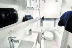 Designed with both functionality and indulgence in mind, Chillin’ Hut features an owner’s suite with a walk-around bed, three additional queen cabins, and two private forepeak cabins—each with its own ensuite freshwater electric flush toilet. Altogether, the layout accommodates up to 8 guests comfortably, with optional space for additional guests in the forepeaks.
