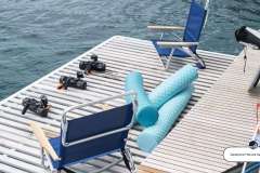 Chill in the flybridge’s cushioned lounge areas, enjoy alfresco meals at one of two dining tables, or step down to the hydraulic swim platform for an easy dip into the Caribbean blue. A watermaker, freshwater purification system, and a 615-liter fridge/freezer with chilled water and an ice maker ensure every onboard moment is as refreshing as the last.