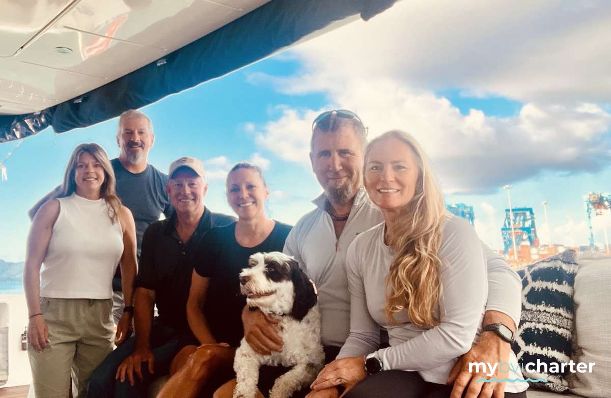 Where can I begin. My wife wanted to do something special for her birthday. We had all kinds of ideas and plans, however she wanted to do something extra special. She happened upon private charter boats and stumbled into Dreamcatcher. From the very beginning, Stef and Jake were prompt in their email replies and responses answering all the important questions as well as the ignorant ones since we had never done anything like this before. Jake and Stef took it in stride and were very kind and polite through the whole process down to the best ways to travel and get there, offering advice along the way. The conference call the week before was a big help as it answered a lot of questions that came up at the last minute such as things to pack, what to prepare for, down to last minute dining and drink choices. The day we arrived in St. Thomas we caught a cab from the airport to the marina where Captain Jake stood waiting for us with a cart to help us move all our gear from the cab to the boat. When we arrived at the boat, Stef was ready and willing to do whatever she needed to and welcome us aboard. “We are a shoe free ship so drop them in this basket and come on in!” We were shown where our sleeping quarters would be for the week. We already had a great idea of what we were walking into because the preference sheet as well as sleeping arrangements were well laid out for us prior to our arrival so we knew EXACTLY what to expect. I will say, it went above and beyond our expectations. Everything was tidy, clean, and neat. A welcome basket greeted us as soon as we entered our rooms that included a journal, welcome note from the crew, as well as sunscreen and towels. Since it was my wife’s birthday, they went above and beyond and decorated the door to our room with Happy Birthday banners. Before we could turn around, as we were all wary and famished from our travels, we were greeted with an appetizer and shown where the beverages were so we could immediately begin our vacation. We set sail and went to our first bay for the night and traveled to many on our seven-day tour. Captain Jake is excellent and knows the waters around us, as well as how to provide a smooth sail as to not disturb us or create any illness on our moves from port to port. We motored part of the journey and sailed the rest. He was willing and able to let us be involved in the process and stood by as we swapped sea stories of our own personal adventures through our lives. The food on board was top notch. Every meal was shared with laughter and joy as we indulged in what Stef prepared for us. Breakfast was fantastic. Lunch, even better. There were several days that she spent all day prepping for dinner. You could really tell she put her heart and soul into it as dinner was normally quiet as we all savored in the fare that she set out in front of us. Although we filled out preference sheets, we never really designated meals as we are uncomplicated and easy going. There were 5 of us in our party total and some had special requests, but Stef nailed every meal and fit everyone’s specific requests from beginning to end. You want chicken nuggets? No problem. Pizza? Why not. Fish tacos? Our pleasure. Fresh lobster on the grill that we caught while diving? Absolutely! We were never left leaving the table hungry and as the day melted on, there were always snacks available and of course, cold beverages of whatever we wanted. Before dinner every evening we had a light snack as well as hand crafted cocktails to boot to wash down our exciting days as we traded stories of our current and past adventures. My personal favorite of every day was saying goodbye to the day and blowing the conch shell as the sun set on the horizon. I am a little bit more of a night owl, so Jake and I got to sit up late many nights and chat. The conversation was warm, friendly, and welcoming as we shared about ourselves and learned about each other. There was much laughter to be had. We got to see so much on our journey that it is hard to put it all into words. Beautiful bays, amazing wildlife, shipwrecks, private beaches and so much more. What do you want to do today? Lay on the net and take a nap? Hang some hammocks and swing in the breeze? Float around on some rafts or swim? Give paddle boarding a try? Go to a private beach and sunbathe? Get scuba certified and go for a dive? How about a snorkel? Grab some lunch from a floating taco barge or stop in town for some shopping? Literally, anything that we wanted, they accommodated without question. I wanted to also point out that I personally, was a little reluctant about vacationing with two dogs on board a 47’ catamaran, but Daisy and Parker are so well behaved, they left an impression on our hearts. The day of my wife’s birthday, we were able to use the boat as our home and decorate it for her to feel special. That evening, Stef and Jake secured a special cake made just for my wife and we were all able to enjoy it. The cake was so big, that we enjoyed the other half the next day! Stef split it in half and flopped it down on the table for us to all to delve into and enjoy. Towards the end, we were all presented with a video of our vacation that highlighted our top moments and passed to us to keep this memory forever. I could drone on and on how amazing this whole experience was, but I will leave you with these final thoughts. This experience has ruined all my other resort travels in the future as this was so perfect, nothing would compare to having this experience again. We went on a vacation for that purpose. To disconnect, unwind, and relax. We came as guests, but we left with friends. Jake and Stef will now be ingrained in our lives forever and there is absolutely no doubt in my mind, we will be back to see them again and again, and again. This vacation is everything you make it. The more specific you are with them about your wants, needs, and desires, the more perfect they will make it for you.