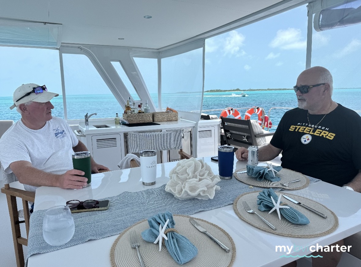 Thank you for a spectacular week of adventure visiting the Abaco Islands. The icing on the cake was being aboard Earnout (a gorgeous catamaran!) and having you two as our hosts! You both do a fabulous job of making us feel welcome and comfortable. Plus, every meal was a dining experience beyond our wildest dreams. A Michelin quality restaurant all the way!