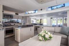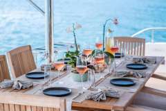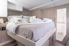 EMYSA is offered primarily as a sailing catamaran. The central space of the yacht is the main saloon, which connects to the aft deck. The aft deck is where heart of the yacht is and usually it is where you, as a charter guest, spend most of your time. The modern cabins are connected by stairs to the main saloon - roomy, comfortable and pleasant. The cabins are located below the main saloon, connected by stairs (inquire about handicapped access). Multiple portholes offer desirable views, while providing privacy if needed.