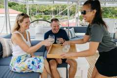Start with the obvious: Encore has a Jacuzzi and an eFoil. This is not a “let’s just read books in the cockpit” catamaran.