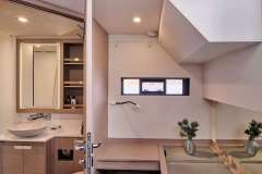 On deck, the Jacuzzi is the quiet flex — hot soak on a sailing cat this size is still rare. Add full AC, Wi-Fi, a proper multimedia setup and shaded outdoor dining, and you can switch from watersports chaos to civilized aperitif in about 30 seconds.