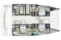 HARMONY is classified primarily as a sailing catamaran. The central space of the yacht is the main saloon, which connects to the aft deck. The aft deck features a variety of seating areas and usually it is where you, as a charter guest, spend most of your time. The tastefully decorated cabins offer unbeatable views in the morning and are located just below deck. The cabins are located in the 2 massive hulls. Multiple portholes provide a connection with the natural world outside.