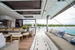 Main deck has a bright and airy main salon (fully air-conditioned) as the galley direct access to the forward cockpit lounge area.