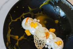 caprese style tomato carpaccio , balsamic pearls and homemade foccacia