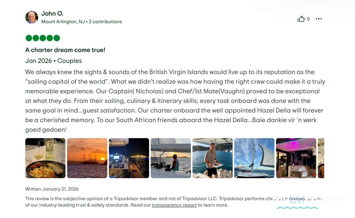 We were enamored by the attention to detail, the kindness, the service of the crew towards their guests. They were always there to serve and even teach the basics of sailing and boat life. When asked, they would share their adventures in previous roles, multiple countries, motorcycle and hiking, overlanding and camping. This previous experience, and the “heart of an adventurer” they possess seems to have prepared them for this current place in life which they excel at. They made us feel like family, and we would certainly accept them into ours!