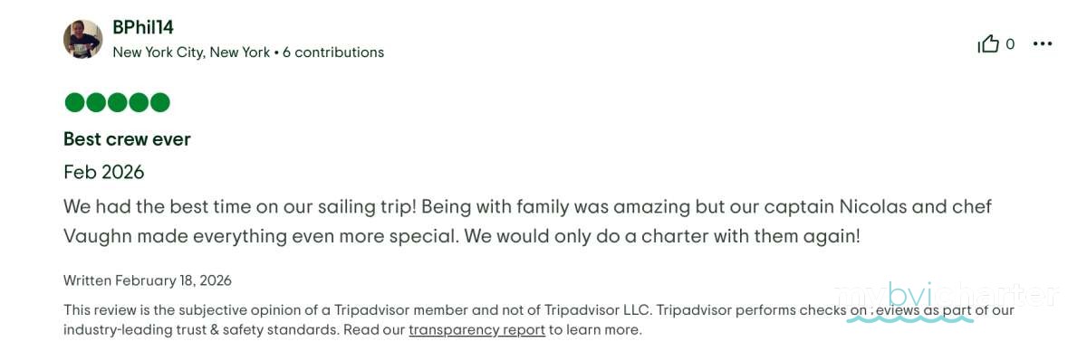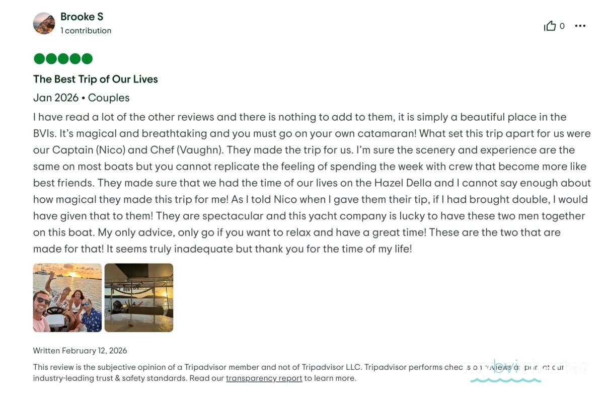 We were enamored by the attention to detail, the kindness, the service of the crew towards their guests. They were always there to serve and even teach the basics of sailing and boat life. When asked, they would share their adventures in previous roles, multiple countries, motorcycle and hiking, overlanding and camping. This previous experience, and the “heart of an adventurer” they possess seems to have prepared them for this current place in life which they excel at. They made us feel like family, and we would certainly accept them into ours!