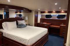 Accommodating up to 8 guests in 4 beautifully appointed staterooms, KATANA offers a full-beam master suite amidships, two VIP cabins, and one twin—all with en-suite bathrooms and refined finishes that reflect her classic American yacht styling. Natural light flows through large windows, enhancing the serene onboard ambiance.