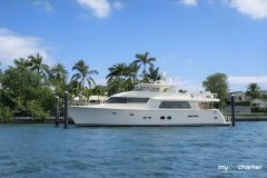 KATANA is an 86’ Pacific Mariner motor yacht (2013) with classic William Garden design and the feel of a much larger yacht—timeless lines, warm interiors, and serious cruising comfort for the Virgin Islands and beyond. Sleeps 8 in 4 staterooms: a full-beam Master suite amidship, 2 VIP cabins, and 1 Twin—each with a private ensuite. Highlights include a flybridge Jacuzzi for sunset soaks, multiple alfresco dining areas with a barbecue and bar for easy entertaining, and rich woodwork inside that keeps the salon and formal dining space elegant yet inviting. With a smooth semi-displacement ride and a quick cruising pace around 20 knots (top near 25), KATANA makes moving between anchorages part of the fun. Classic style. Modern ease. KATANA is the private escape that goes the distance.