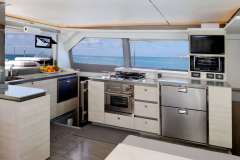 KISMET is offered primarily as a sailing catamaran. The yacht layout radiates from the main saloon, which connects to the aft deck. The aft deck is where heart of the yacht is and usually it is where you, as a charter guest, spend most of your time. The tastefully decorated cabins are connected by stairs to the main saloon - roomy, comfortable and pleasant. The cabins offer unbeatable views in the morning and are located just below deck. Multiple portholes supply a sunny feeling, with the option for darkness and privacy.