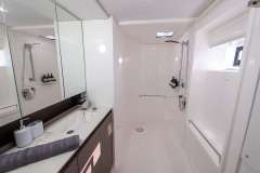 1 master cabin with queen berth, lounge area, dressing table/desk and a large en-suite bath with electric toilet and a large shower. Individual A/C control for guest comfort.