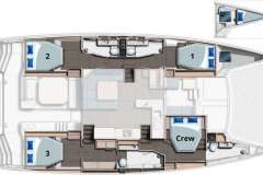 Advertised by DMA Yachting, the astonishing charter yacht LIVIN is a 50 ft sailing catamaran. The most appealing features of LIVIN are her well-chosen interiors and inviting socializing areas. LIVIN spends the summer and winter season in British Virgin Islands. She was delivered by the famous yacht builder Leopard in 2025. The spacious yacht layout features 3 generous cabins and comfortably accommodates a maximum of 6 guests.