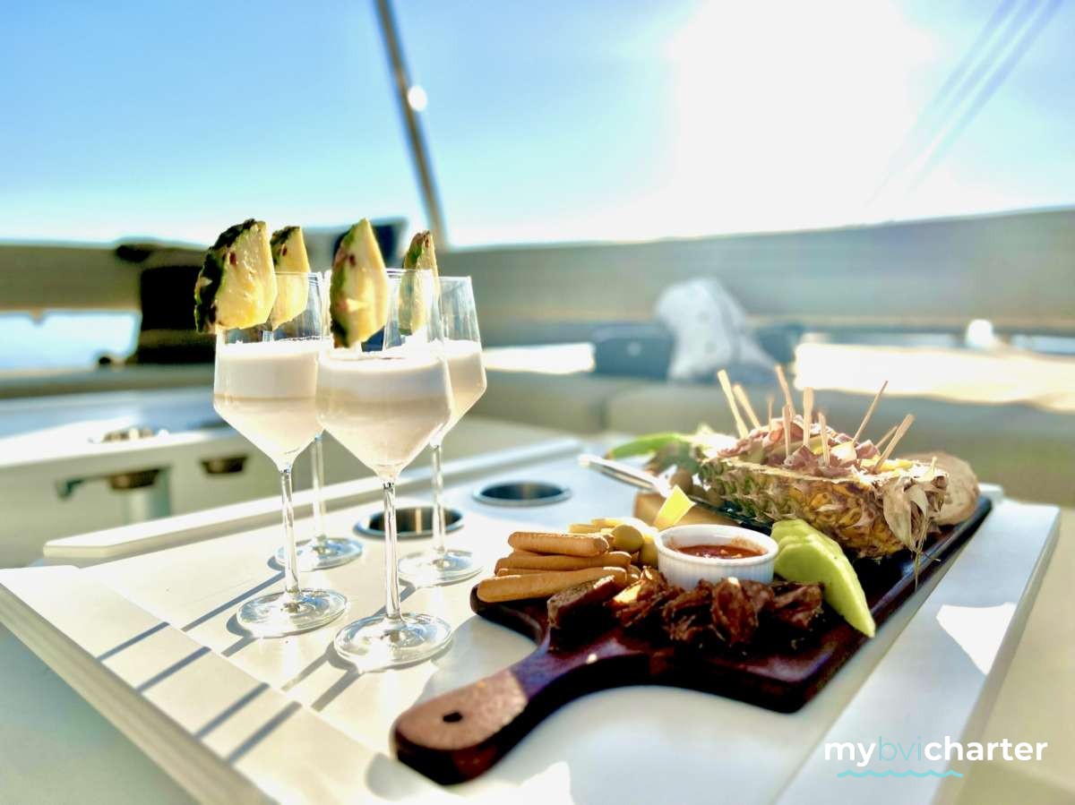 Head up to the flybridge and take in the breathtaking panoramic views of turquoise water stretching in every direction. It’s a front-row seat to the sails in action and the perfect spot to unwind with a good book or enjoy appetizers and cocktails at sundown. Whether you’re catching a breeze or catching up with friends, this space quickly becomes a favorite.