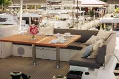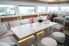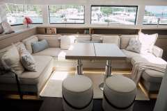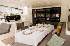Luna Nova is presented primarily as a sailing catamaran. The yacht layout radiates from the main saloon, which connects to the aft deck. The aft deck is expansive, with a comfortable dining and seating area and that's where most of the meals are served. The immersive cabins are connected by stairs to the main saloon - roomy, comfortable and pleasant. The cabins offer unbeatable views in the morning and are located just below deck. Multiple portholes supply a sunny feeling, with the option for darkness and privacy.