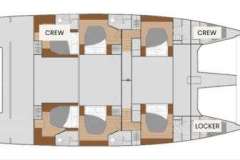 Crew cabins are additional to guest cabins. They are in the Port Aft cabin and Forepeak cabin.