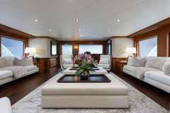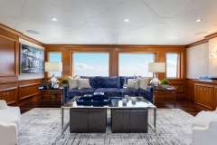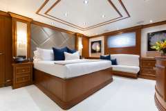 M3 accommodates ten owner's and guests in five luxurious staterooms plus crew quarters for up to eight in four cabins.Her custom, updated interior features honey glazed maple joinery along with all new carpet, new marble foyer flooring, new window treatments, upholstery and soft goods with rich fabrics and furnishings throughout the yacht in 2023. Her classic main salon and formal dining for ten set the tone for an elegant yachting experience.The Master stateroom located on the main deck features a luxurious King size bed, large 3D flatscreen TV along with an adjacent private sitting room with sofa, chairs and TV. The large his and her bath features marble and granite, massive central shower and Jacuzzi tub.