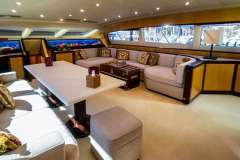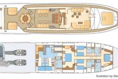 Mangusta 105′ is classified as a superyacht. The key part of the yacht, inviting aft deck, continues to the well-equipped and inviting main saloon. The main saloon is a comfortable space that is well-equipped to shield from the elements in comfort and enjoyment and offers a range of entertainment options. 4 tasteful cabins are thoughtfully spread out to allow for comfortable access and private setting.