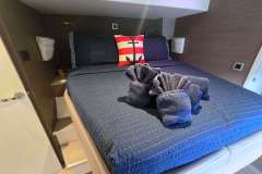 MERRY-TIME is offered primarily as a sailing catamaran. The yacht layout radiates from the main saloon, which connects to the aft deck. The aft deck features a variety of seating areas and that's where the guests spend most of their time. The immersive cabins are located in the 2 massive hulls. The cabins offer designer mattrace beds and feature ensuite bathrooms. Multiple portholes offer desirable views, while providing privacy if needed.