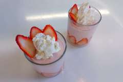 Light strawberry mousse with whipped cream and fresh strawberries.