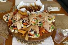 Cucumber rollups with hummus, feta, sundried tomatoes, and Kalamata olives.