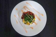 Roasted peppers stuffed with goat cheese, topped with honey and balsamic.