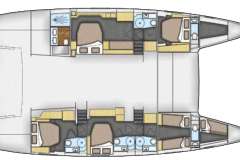 NENNE is introduced primarily as a sailing catamaran. The the core layout is spread out from the main saloon, which connects to the aft deck. The aft deck is expansive, with a comfortable dining and seating area and that's where the guests spend most of their time. The modern cabins are located in the 2 massive hulls. The cabins are located below the main saloon, connected by stairs (inquire about handicapped access). Multiple portholes offer desirable views, while providing privacy if needed.