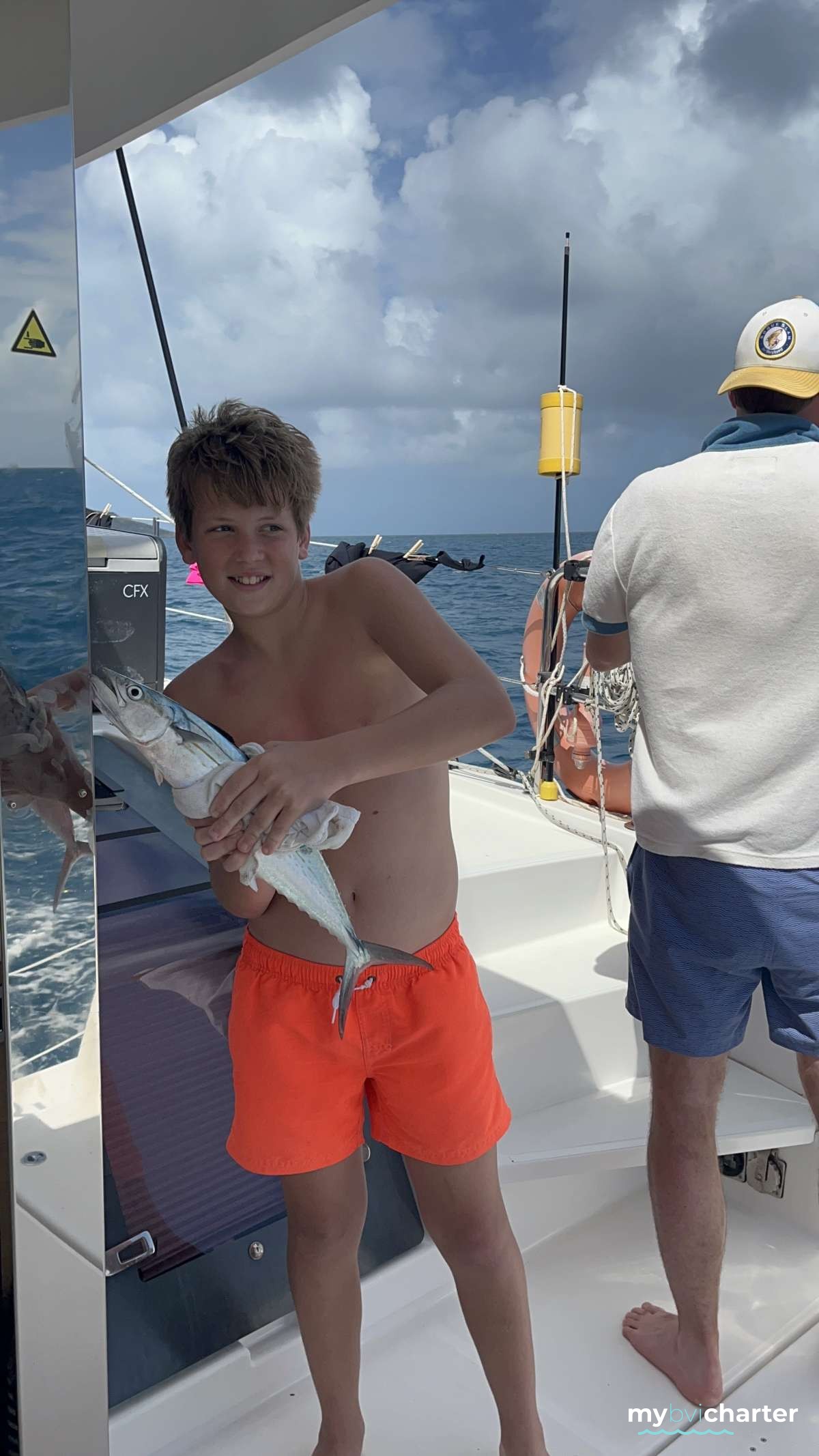 Eric was a great captain. He is one of those rare people who has the gift of making things appear effortless when he is undoubtedly putting in a lot of effort behind the scenes. He made the effort to really understand what we wanted out of this vacation. No doubt lots of folks love to go bar to bar (and who doesn’t like a good Caribbean bar?), but that’s not what we wanted to do on this trip. We were with the 9 people we wanted to be with, and Eric managed to take us to uncrowded spots (even during Christmas in July) where the snorkeling, hiking, and water were all fantastic. And, even the day when we did hit the Soggy Dollar, he made sure we got there early, had our pains killed, and were on our way before it got crowded. We were traveling with 4 teens, and he took the time to get to know each of them whether it was keeping Emily from getting seasick, letting Michael help him man the controls, or having Will fish and wakeboard. He seemingly knew all of their names (and all the adults’ names) immediately. Obviously, he’s taking us to places he’s been to and seen many times before, but he made it seem like he was enjoying our discoveries just as we were enjoying them.